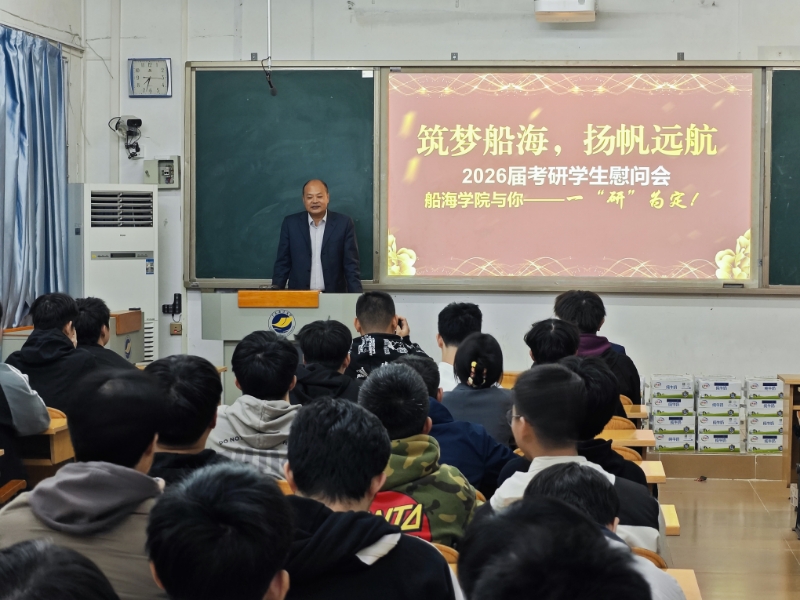 在海滨校区教学楼101室开展2026届考研学生慰问活动。学院院长贾宝柱,正处级辅导员、党委副书记齐昊出席活动,活动由齐昊主持。