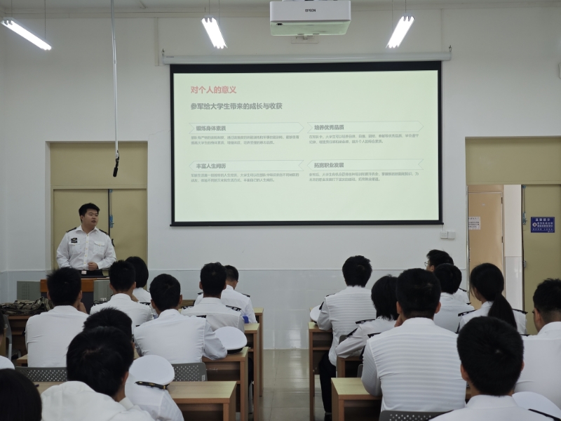 为落实美女av兵员预征预储工作,营造参军报国的浓厚氛围,引导船海学子积极服务国防、投身强军事业,11月30日上午,船舶与海运学院在海滨校区济海楼1号教室组织2026年春季征兵宣传会,学院兼职武装干部、半军管大队长江涛、预征预储船海中队全体人员及志愿入伍毕业生50余人参加活动,活动由预征预储船海中队副中队长王玉堃主持。