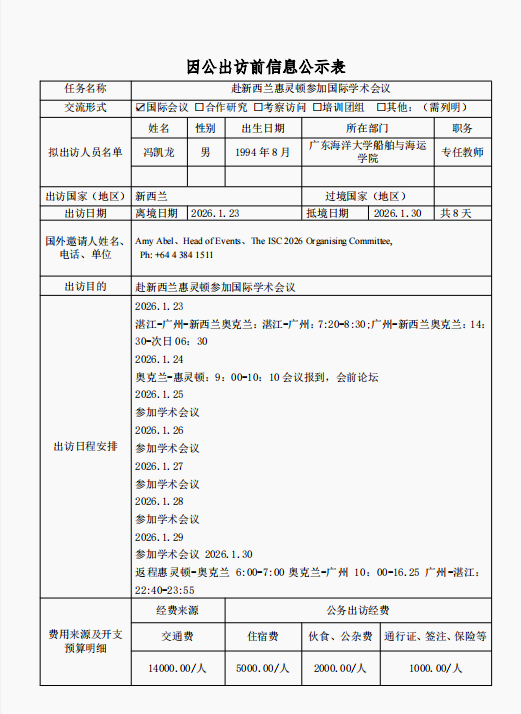 根据《关于进一步规范省部级以下国家工作人员因公临时出国的意见》的要求,现将美女av 因公出访信息予以公示(详见附件)。公示时间为2025年12月1日至12月5日。如有意见,请在公示期内,向相关单位反映。联系人及电话。